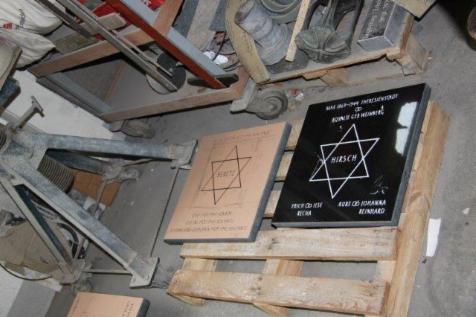 Steinmetz Geuer aus Grevenbroich hat die Namensplatten für das Mahnmal in Gustorf-Gindorf gefertigt. Auf Granit wurden die Namen der Holocaust-Opfer und deren Familien aufgebracht und mit einem silbernen Schriftzug versehen. Die Familie Geuer hat außerdem die Erklärungsplatte gestiftet und kostenlos gefertigt. Impressionen zu den Steinmetzarbeiten gibt es hier...